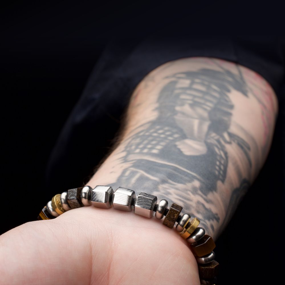 Men's 8mm Mokume Gane, Bronzite and Tiger's Eye Beads Bushido Virtue Bracelet.