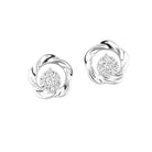 These sweet stud earrings are the perfect addition to your jewelry collection. Crafted in sterling silver, the circular earrings feature a twisted design and a cluster diamond center. Standard friction post and backs.