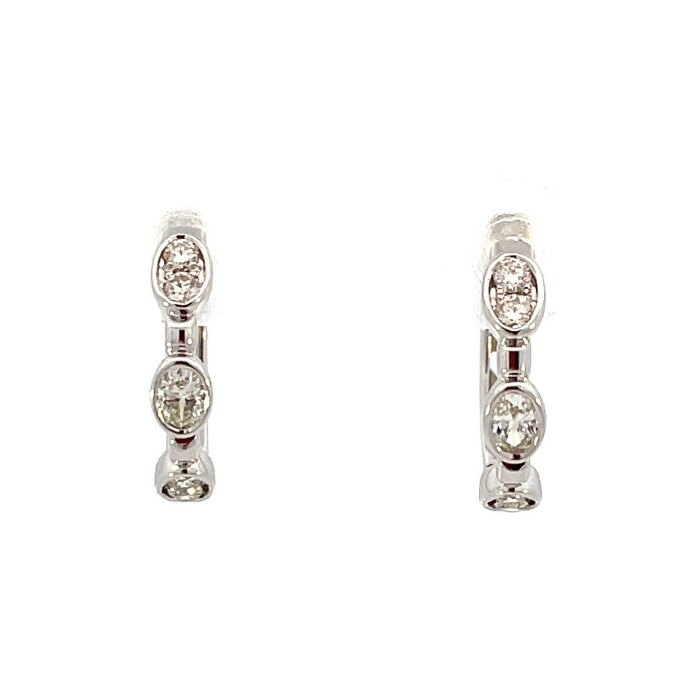 These stunning hoops feature oval and round cut diamonds in an alternating pattern set in 14K white gold. These would be the perfect gift for yourself or that special someone in your life. W