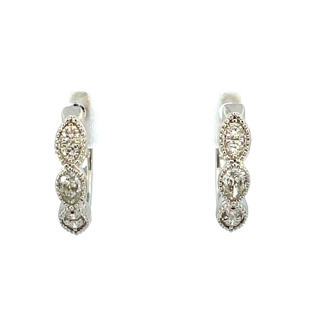 14KW Round and Marquise Diamond Hoop Earrings 3/8 CTW