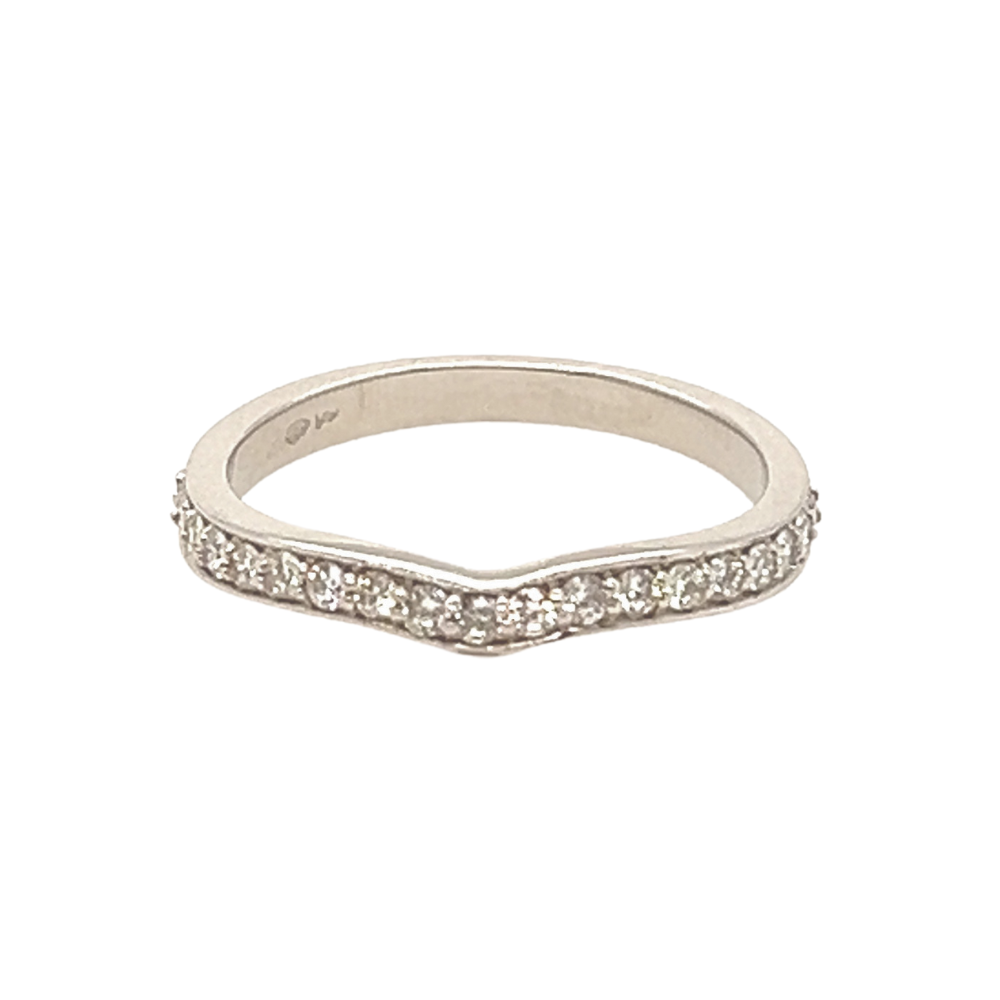 Ladies 14k white gold diamond wedding band with a slight curve in the middle of the ring -- G/H, SI2-3. Perfect complement to a solitaire engagement ring or to mix-and-match in your current wedding set.