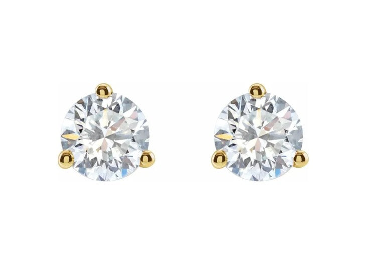 Lab grown diamond studs, 1 cttw, set in 14k yellow gold martini style moutnings