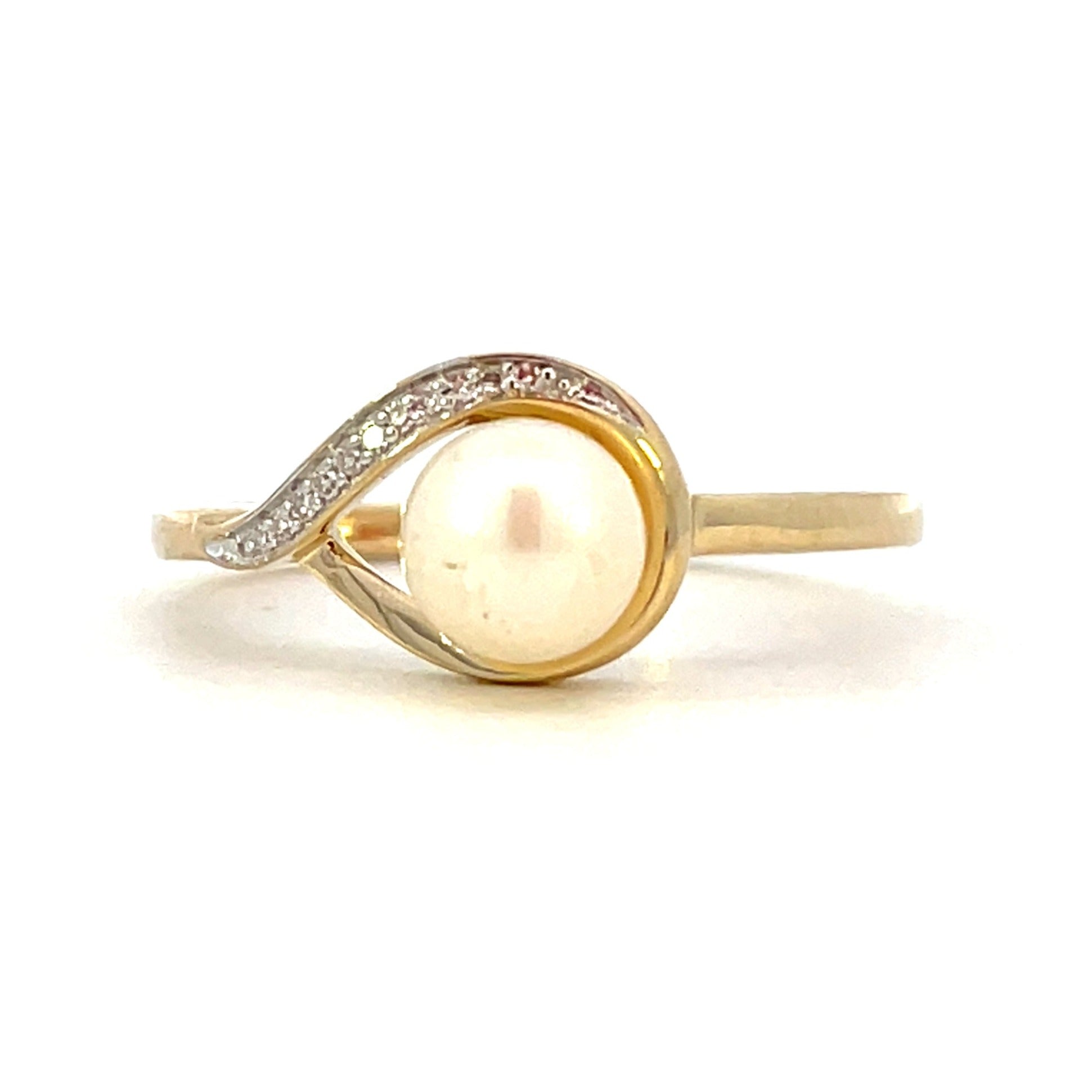 14KY Pearl and Diamond Pear Shaped Ring 1/50 CTW