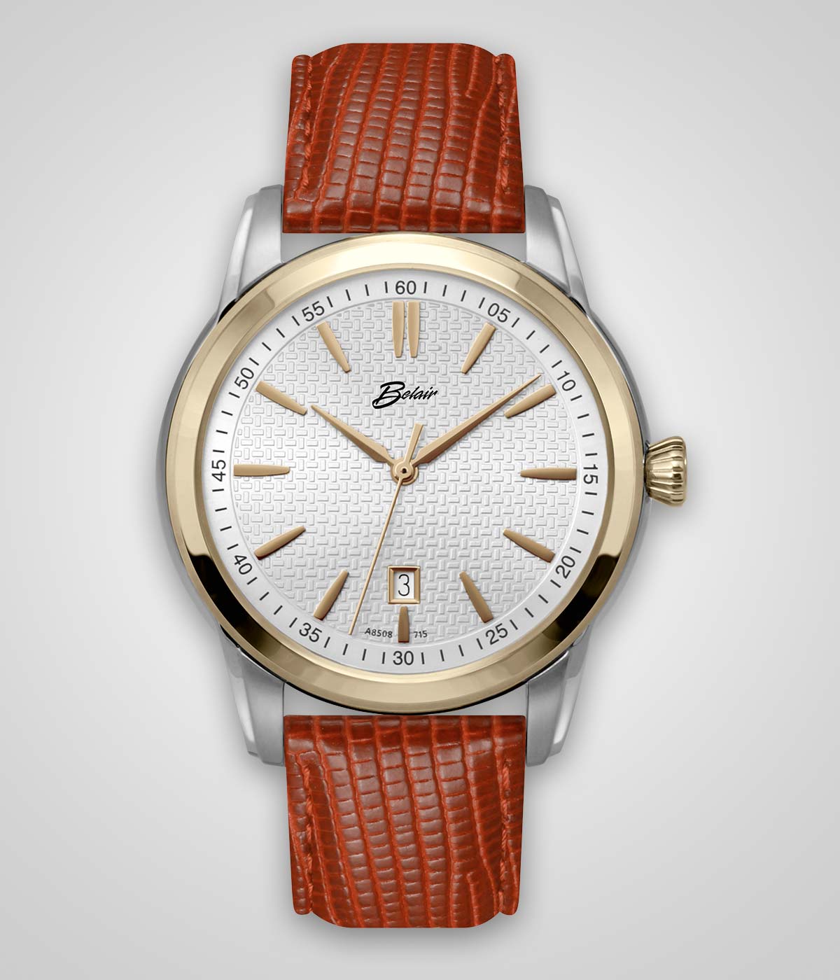 10 ATM, Stainless steel case, Genuine leather strap, Dual push-button release deployment buckle, Sapphire crystal, Case diameter: 45 mm