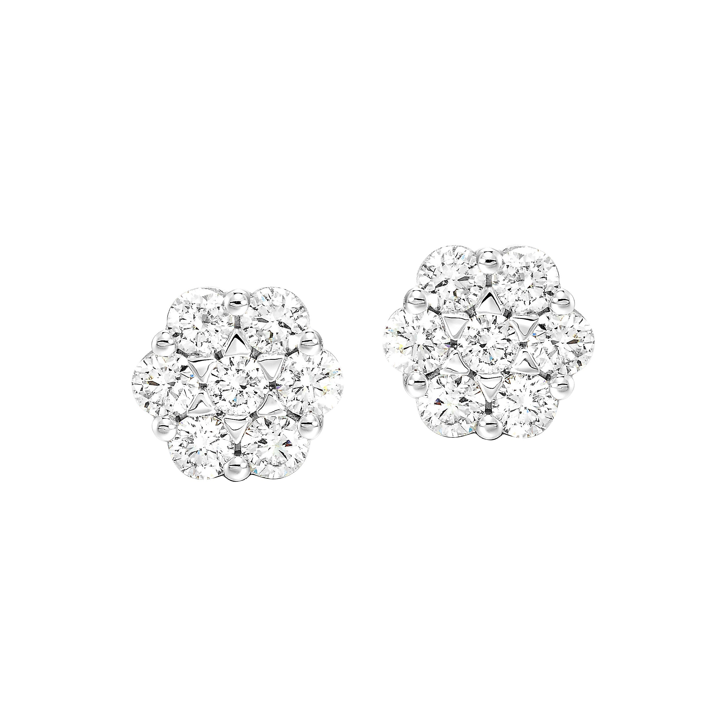 These gorgeous diamond earrings feature a cluster of round-cut diamonds arranged in a flower shape and set in 14K White Gold.
