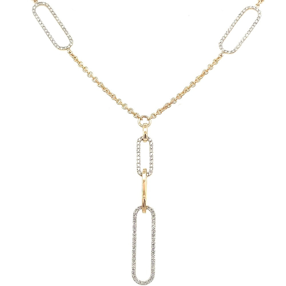 14K Two-Toned Paperclip "Y" Necklace 1 CTW
