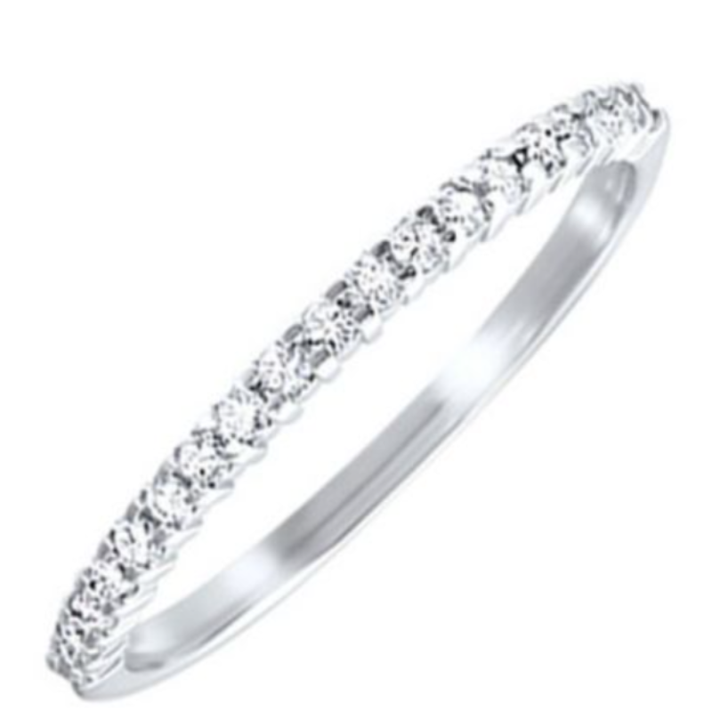 This stunning 10K Gold Band with a shared prong setting features 1/7CTW of diamonds and is a stackable ring that can be mixed and matched with a variety of stunning bands. These stackable rings are the perfect jewelry choice for you or your loved one.