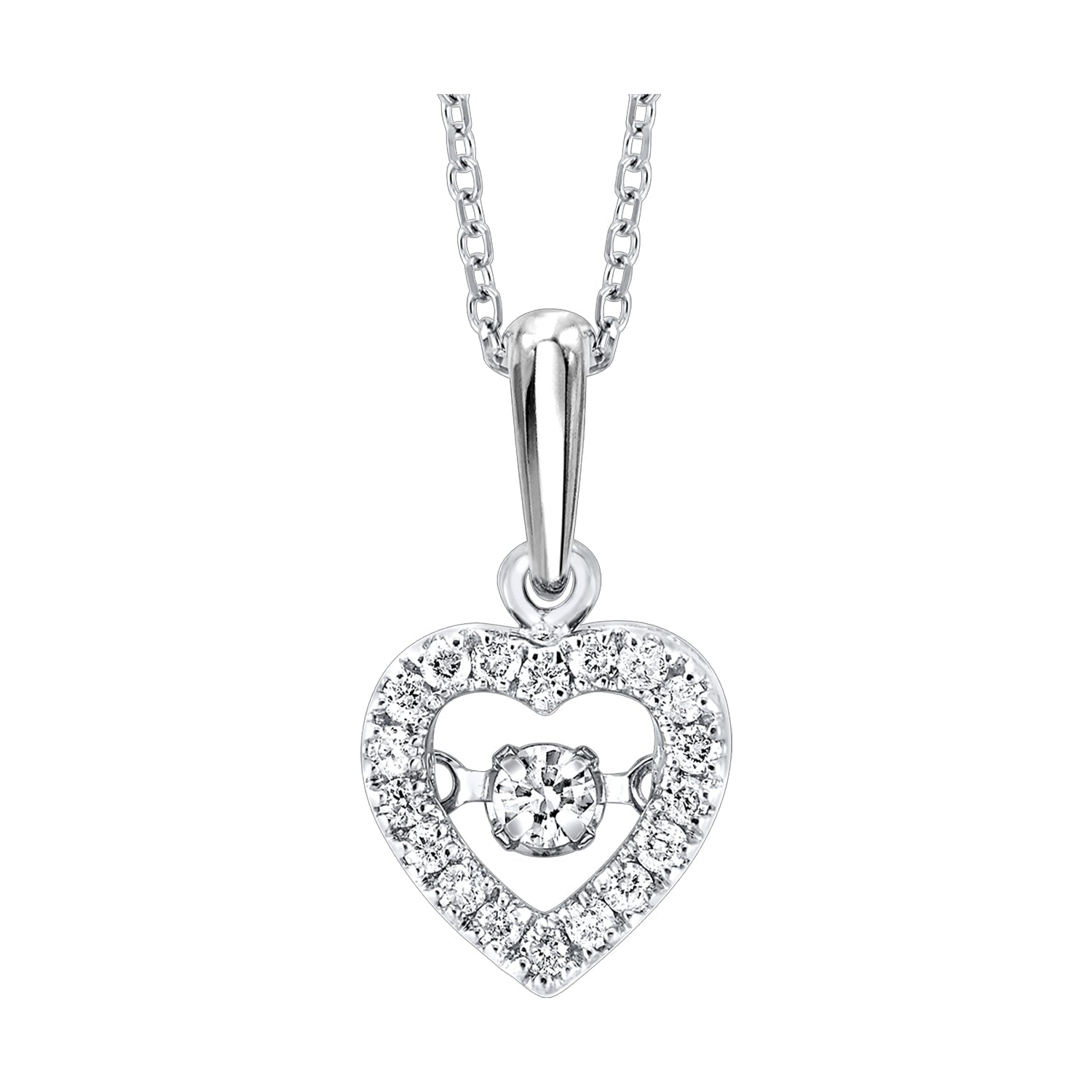 An elegant 10Kt white gold diamond pendant, featuring 19 diamonds with a total weight of 0.18ctw. It's a perfect holiday gift for someone who appreciates classic and refined jewelry.